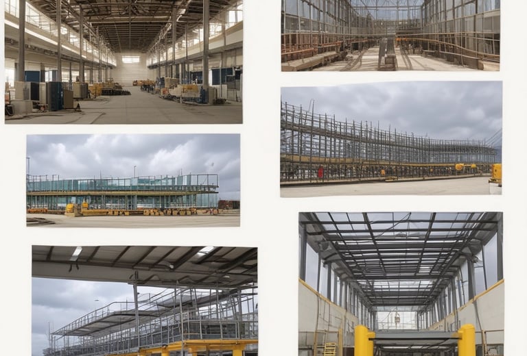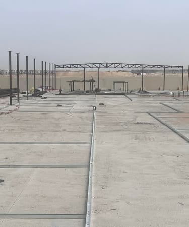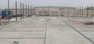 the service includes design and construction of all works from construction of plain concrete for base, steel structure, sandwich panels, MEP and arch. works